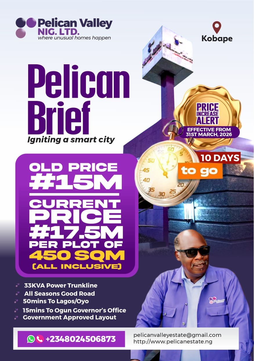 For further inquiries, please call :08024506873www.pelicanestate.ngpelicanvalleyestate@gmail.com